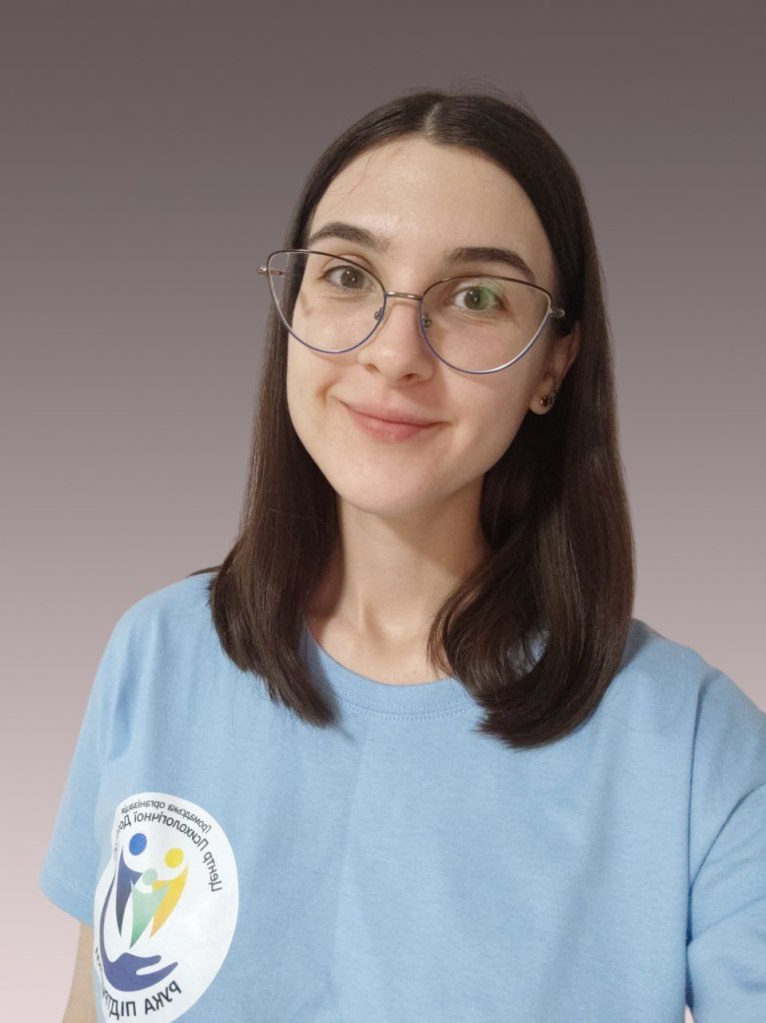 Наймолодша членкиня ГО “Рука підтримки”, яка долучилась до роботи після проходження програми стажування. Фахівець у роботі з дітьми та підлітками, а також людьми, що постраждали від війни.